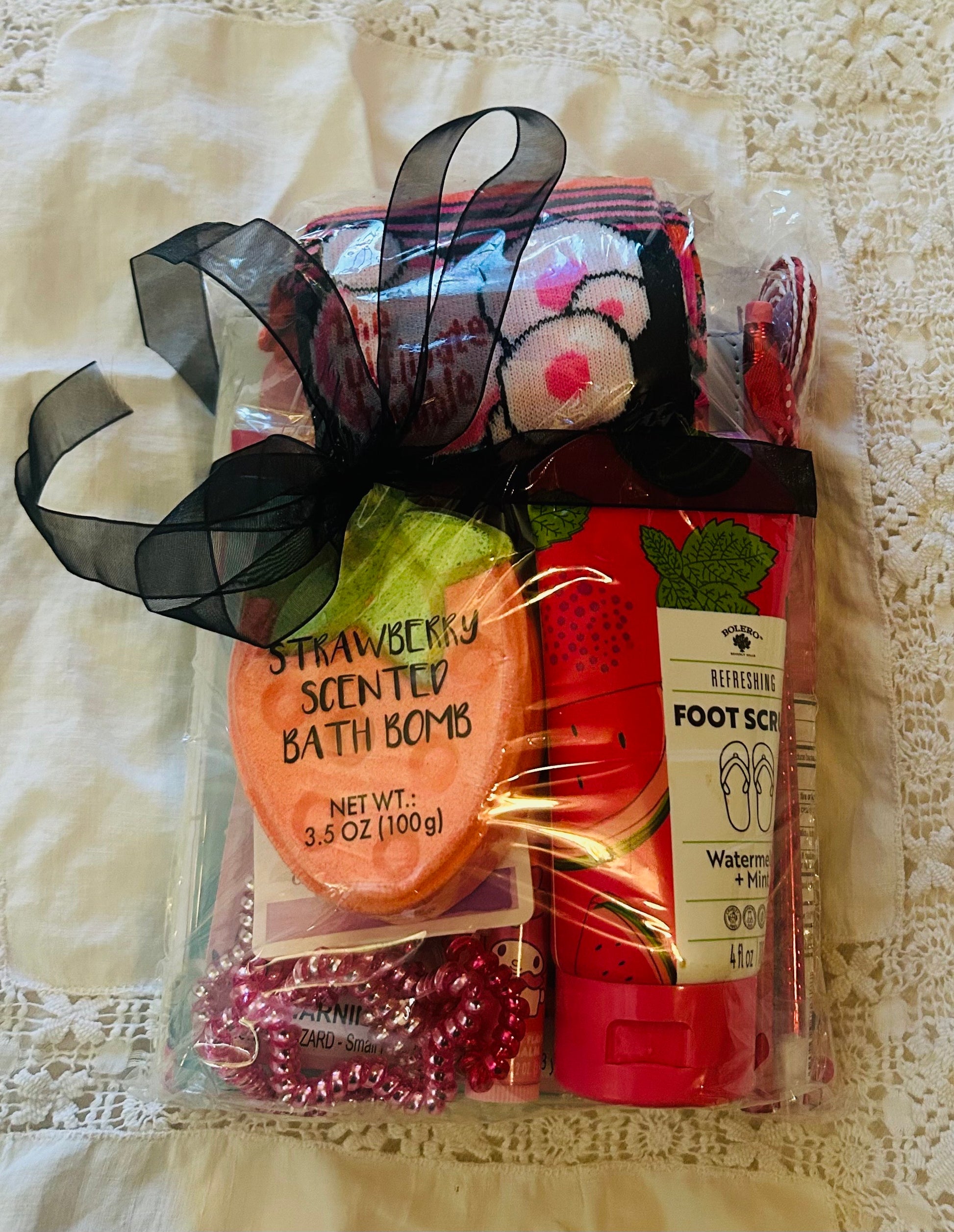 Get ready to pamper yourself with a marvelous selection of cute self care goodies! Enjoy a refreshing "Ice Cream Facial Mask", indulge in some fabulous nail art, and keep your nails in tip top shape with a chic decorative nail file package. Don't forget to rock your kawaii style with a whimsical unicorn headband, luscious kawaii lip balm, and a fizzy strawberry bath bomb to melt your stress away! All this, plus a hand hand sanitizer and a delightful barrette package to complete your look!